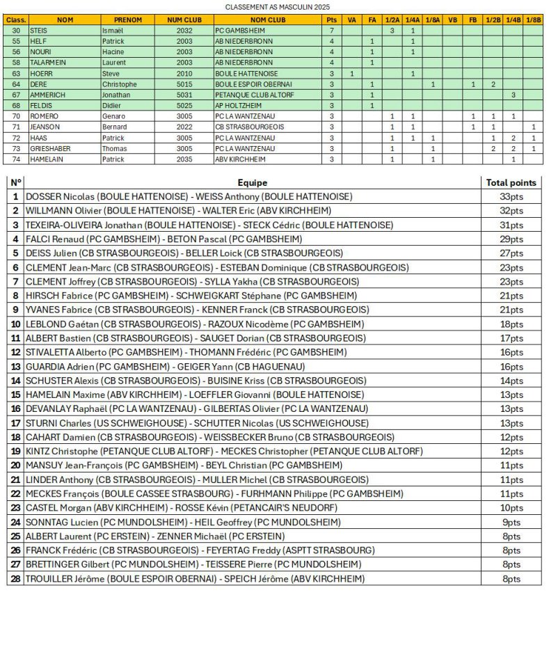 Vous trouverez en pièce jointe le classement définitif des AS féminin et masculin.