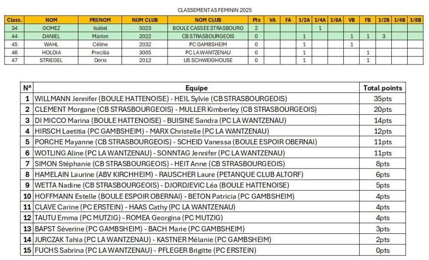 Classement des As féminin et masculin définitif.