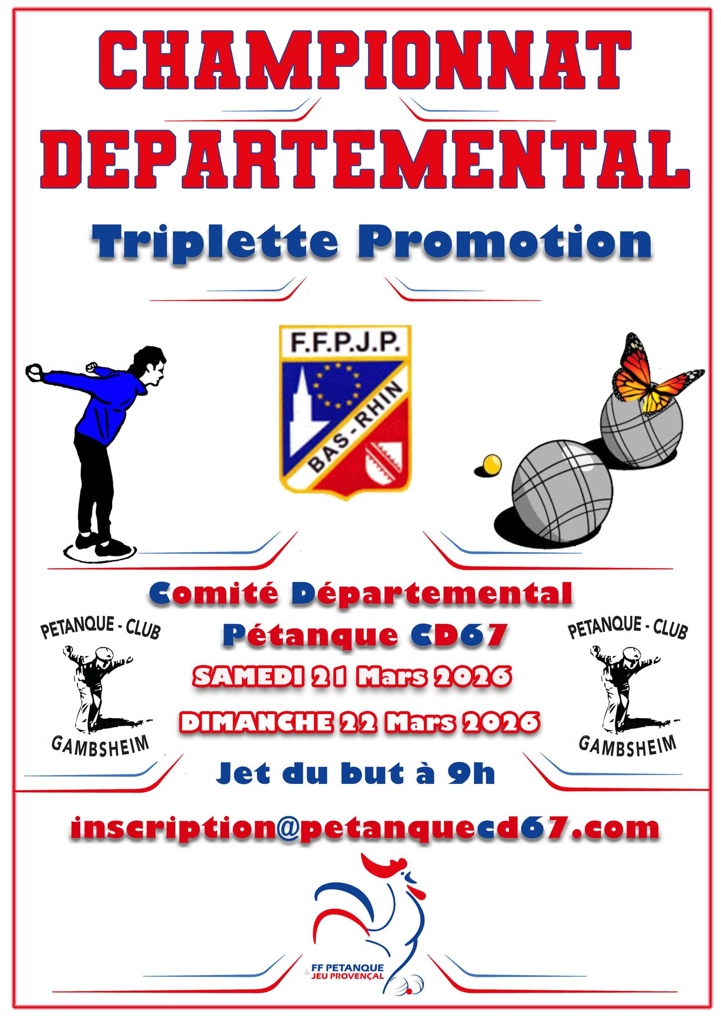 Championnat du Bas-Rhin Triplette Promotion le 21 et 22 mars 2026